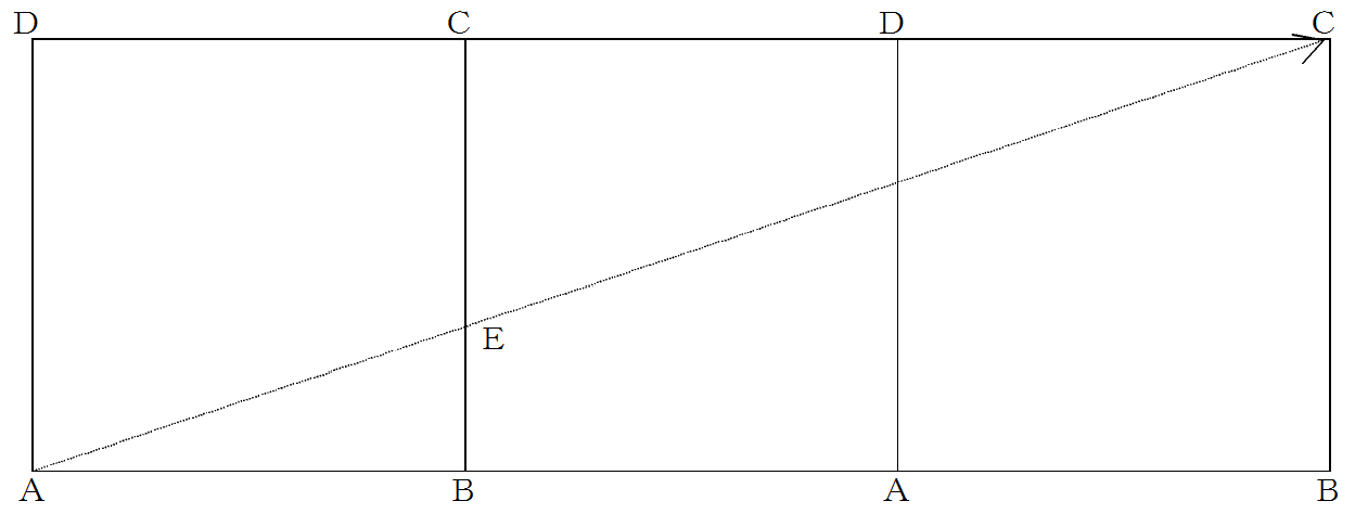 点Eが辺BC上にあることから、右方向へは最低1回は折り返すので、