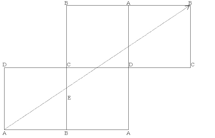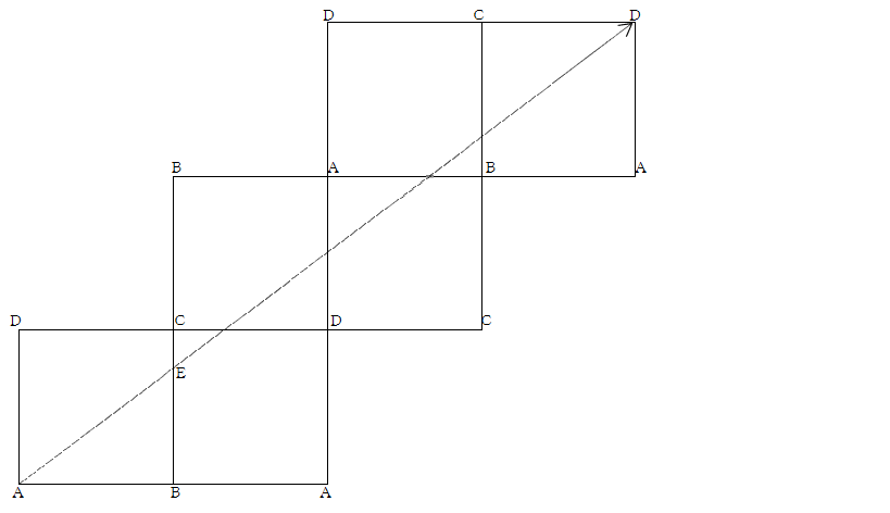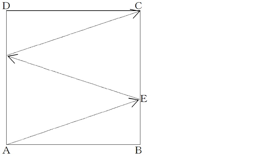 正方形ABCDを、次々に辺で折り返して点Pの動きを直線で考えます。