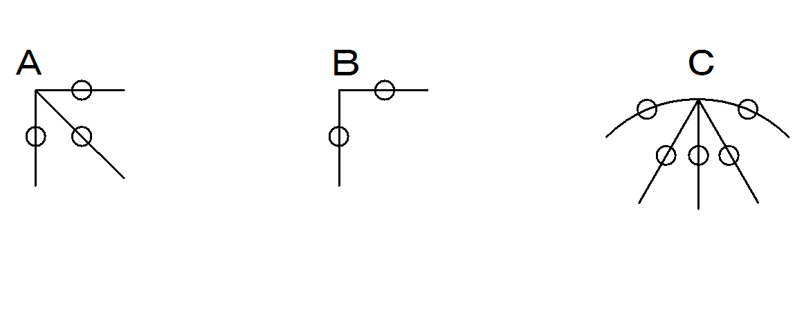 下図のA点には3本、B点には2本、C点には5本の線が集まっていることがわかります。