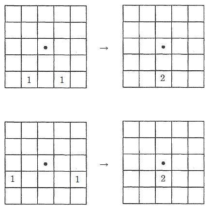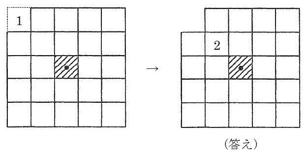 上のように考えると、アに置くAの枚数は、5×2+1=11(枚)とわかります。