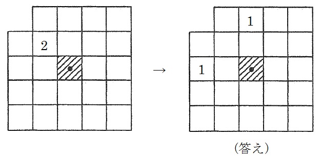 図3の例から、支点(板の中心)から板を置く位置までの距離(きょり)が半分になれば、