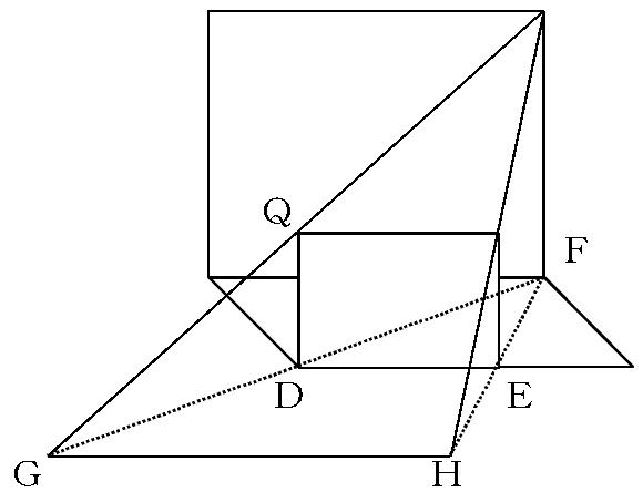 実験1、2のどちらでも影だった部分は、図の斜線部(台形DBHE)となり、