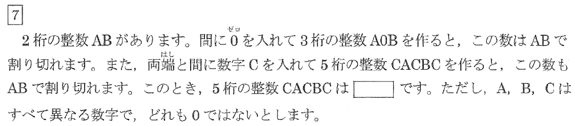 まず、3桁の整数A0Bを式で表すと、100×A+B となります。