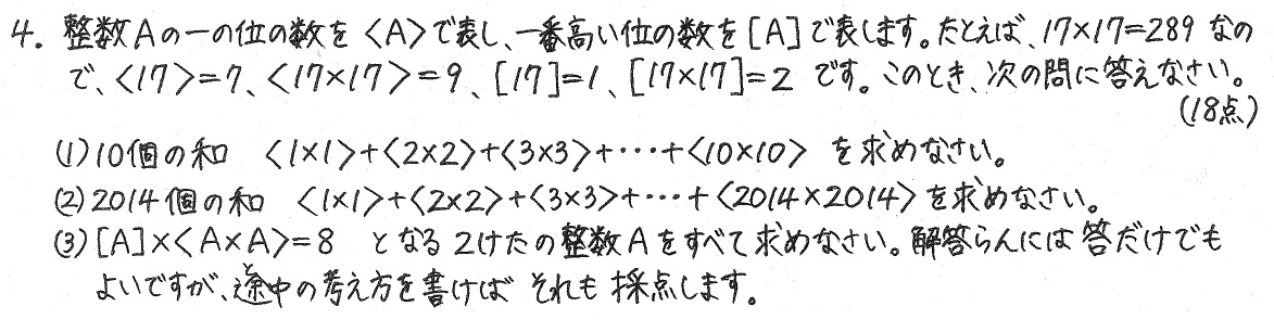 〈2011×2011〉から〈2014×2014〉までの4個の和は、