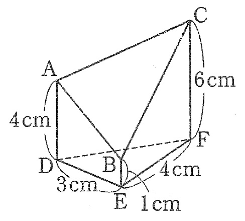 角DEF=90°のとき、この立体の体積を求めてみましょう。