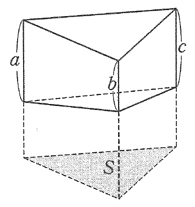 (断頭三角柱の体積)=S×(a+b+c)÷3