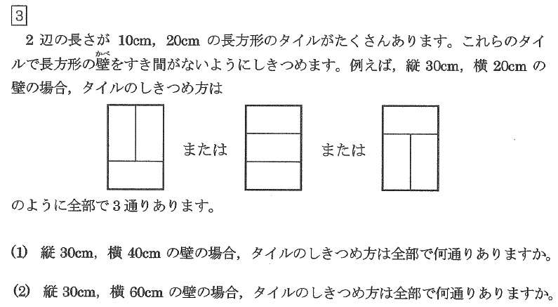 例に示された、縦30㎝、横20㎝の壁のタイルのしきつめ方をAとします。