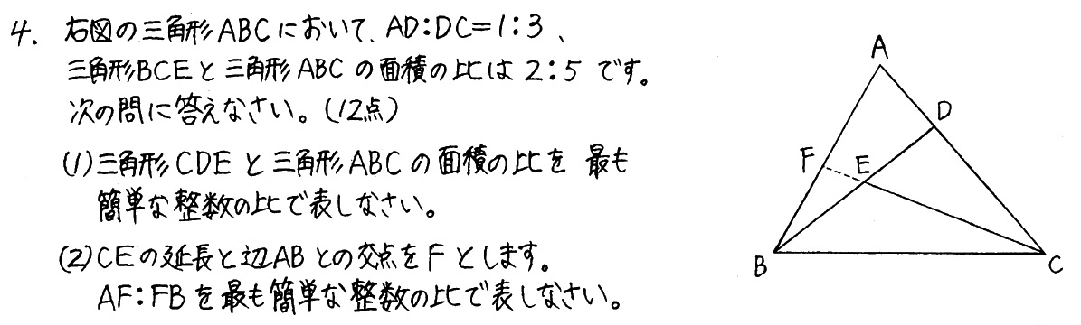 大問4(12点) 平面図形(三角形の面積と辺の比)