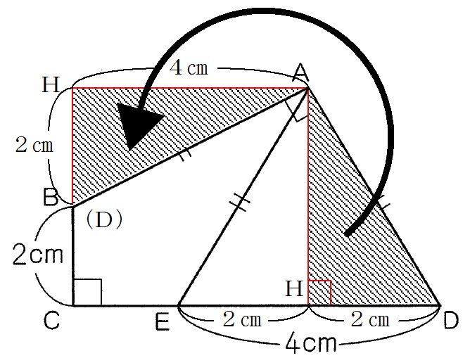 AH = 2+2 = 4(㎝) より、できる四角形は1辺4㎝の正方形になります。