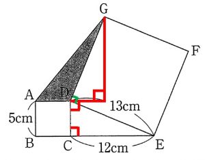 AD=5㎝なので,影をつけた部分(三角形ADG)の面積は,5×12÷2=30(㎠)です。