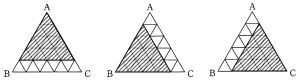 最後に,1辺が1㎝の正三角形は,次のように上から1段目に1個,