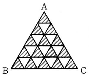 正三角形ABCと同じ向きの正三角形は全部で,3×4+1=13(個)できます。