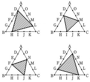 さらに,正三角形ABCと異なる向きの正三角形は,次の4個できます。