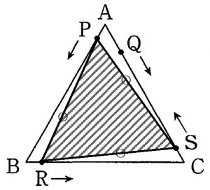 点Qと点Sがはじめて重なるとき,すなわち3つの点が出発してから,