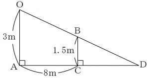 次のように,やぐらの電灯の位置を点O,地面の電灯の真下の位置を点A,