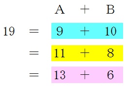 この中で、AとBとの荷物の合計が19個になるような組み合わせを考えます。