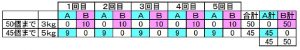 ・Bは1個3㎏の荷物を10×5=50(個)運んだ。