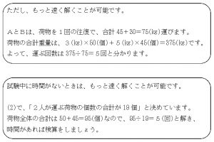 ⑪ 30(㎏)-5(㎏)×6(個)=0(㎏)より、1個3㎏の荷物を運ばないことが分かります。