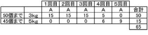 1個5㎏の荷物は運ばないので、1個3㎏の荷物で合計30㎏の重さにします。