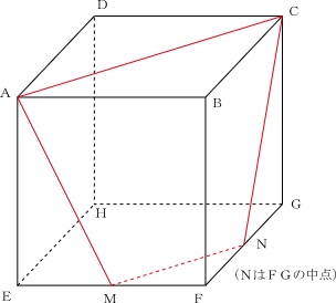 A、C、Mを含む平面で立方体を分けるとき、その切り口は下の図のようになります。